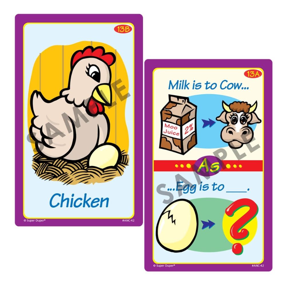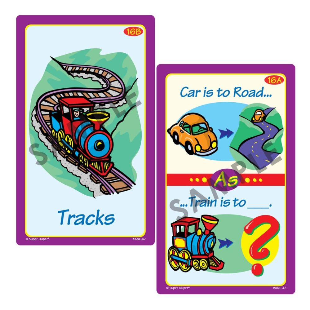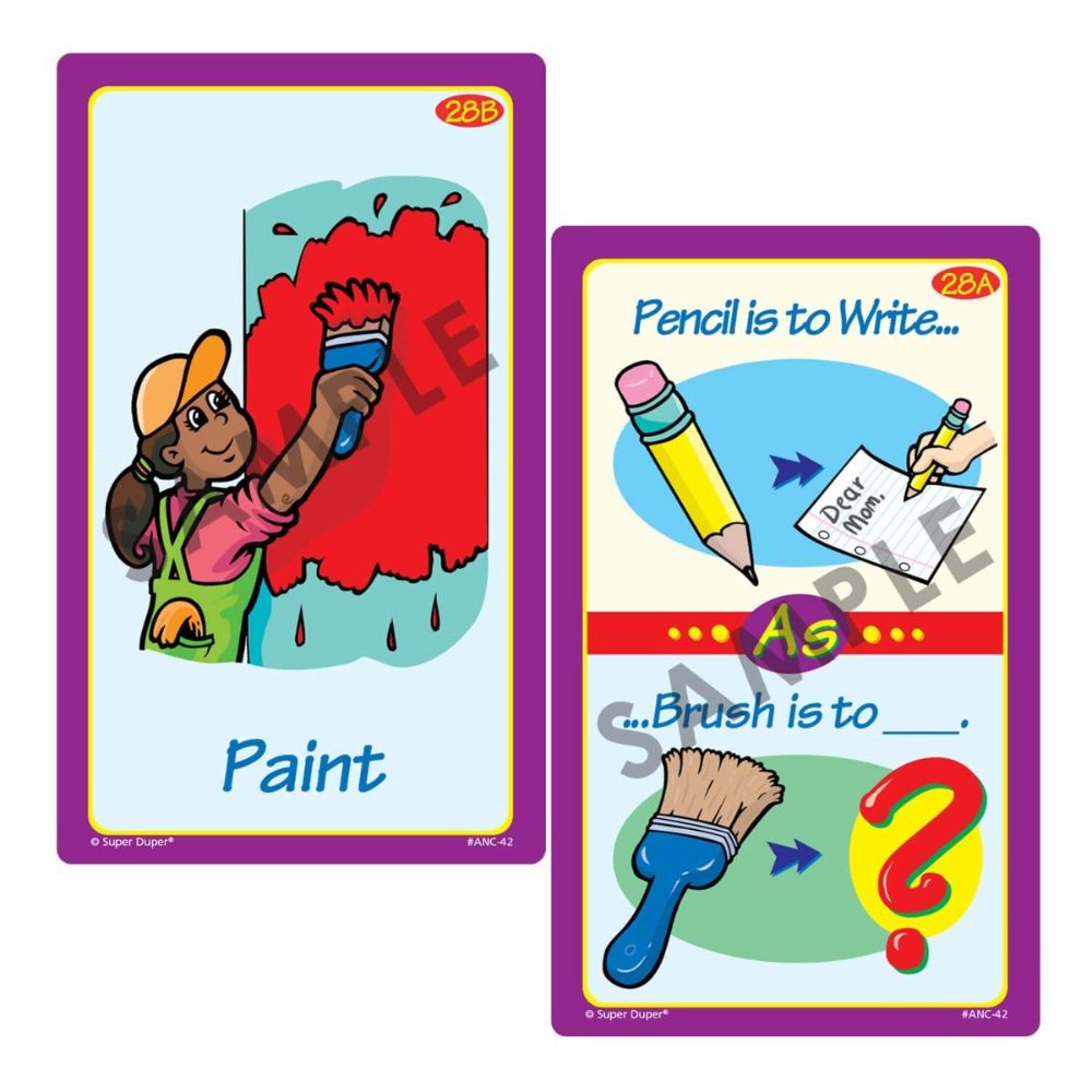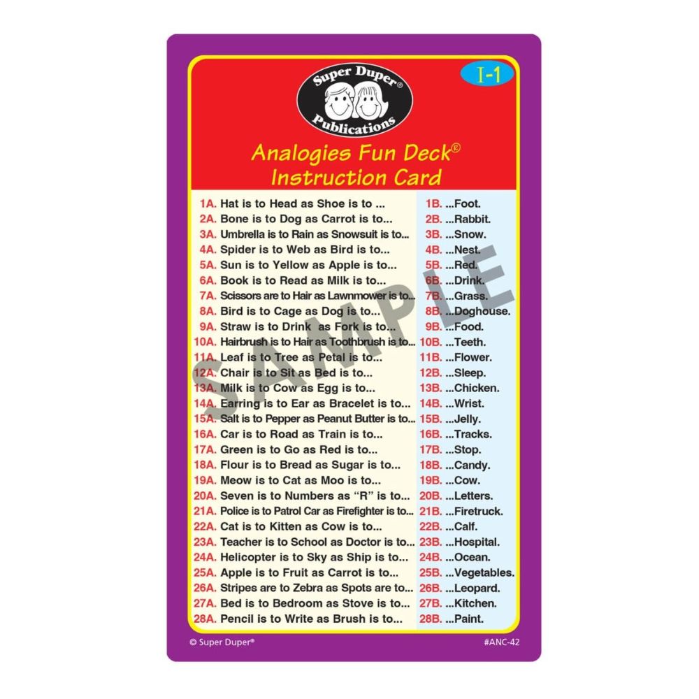 The Analogies Fun Deck is a great way for your students to learn early verbal reasoning skills, vocabulary, and concepts such as part/whole, categories, opposites, function, and similarities and differences.