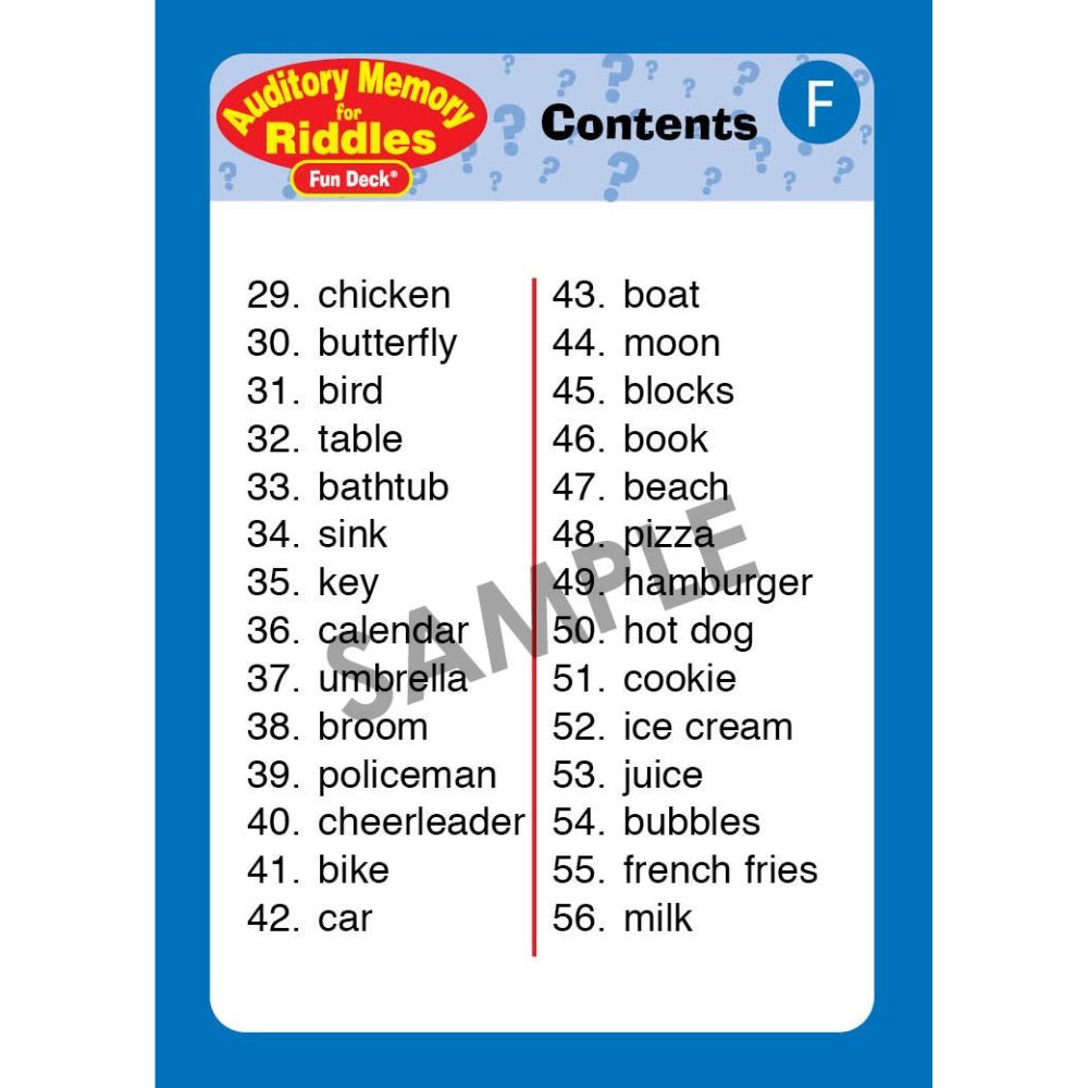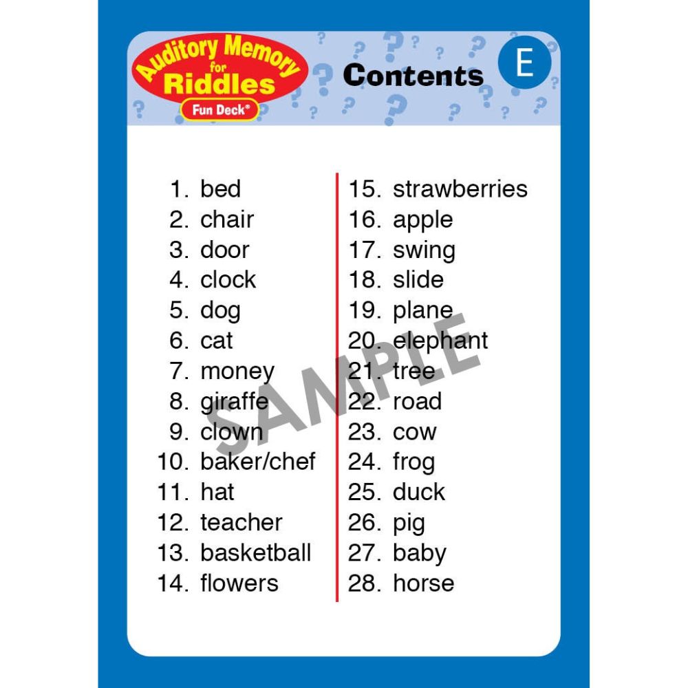 Improve your students' listening, concentration, and memory skills with this 56 card Fun Deck.