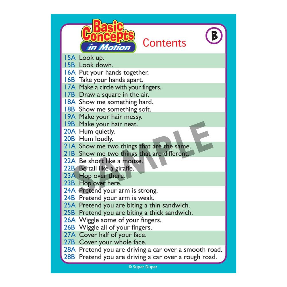 This deck contains 28 fun-filled concept pairs to teach these important skills. Use the colorful cards to play many unique and exciting games! Includes content cards and game ideas.