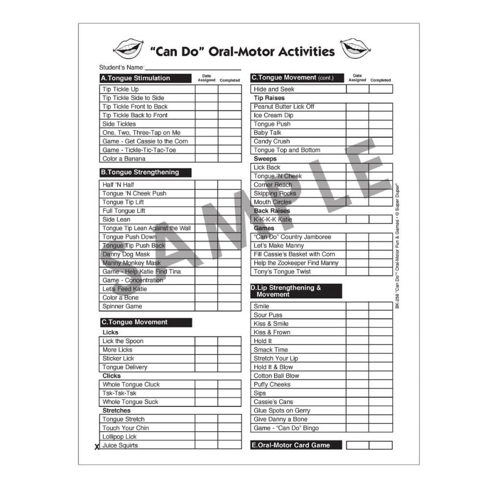 "Can Do" Oral-Motor Fun and Games includes: