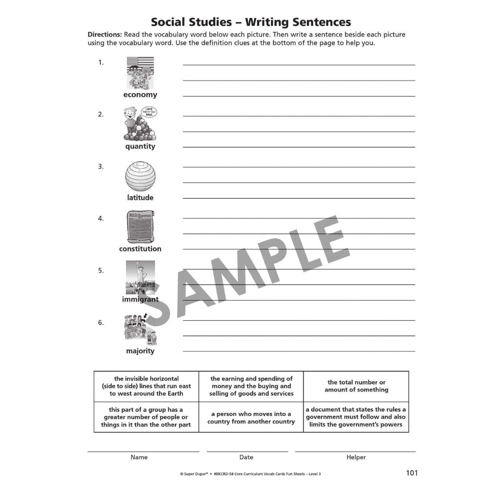 Developed by experts in education, The Webber® Core Curriculum Vocabulary Cards and Fun Sheets (Level 3) introduces and teaches 100 curriculum-based vocabulary words. Help students learn high-frequency, research-based curriculum vocabulary words by matching words and their definitions with the colour-coded cards and illustrations. Then have students complete the workbook activities to help them understand and use these critical vocabulary terms. The same illustration appears on the Vocabulary Word and Definition cards.