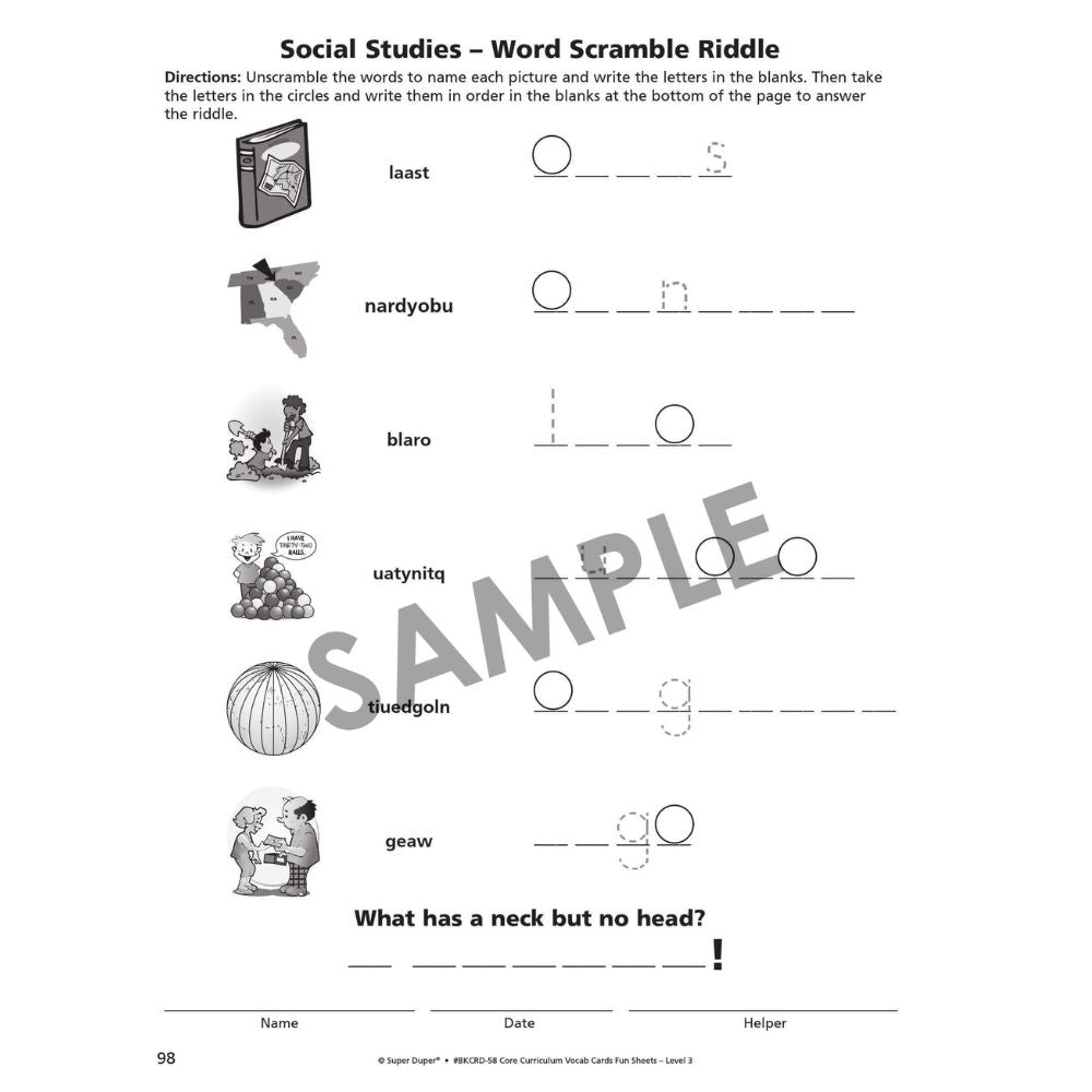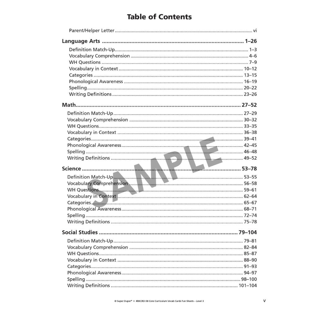 The Webber® Core Curriculum Vocabulary Cards and Fun Sheets are designed to build vocabulary skills in students in grades 2-5 and children ages 7 and up. Level 3 is ideal for learners ready to build upon foundational language skills and explore more advanced concepts in preparation for first grade and up.