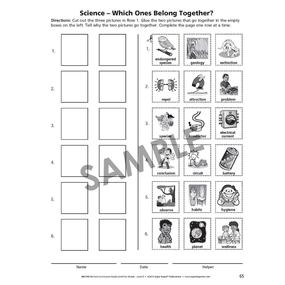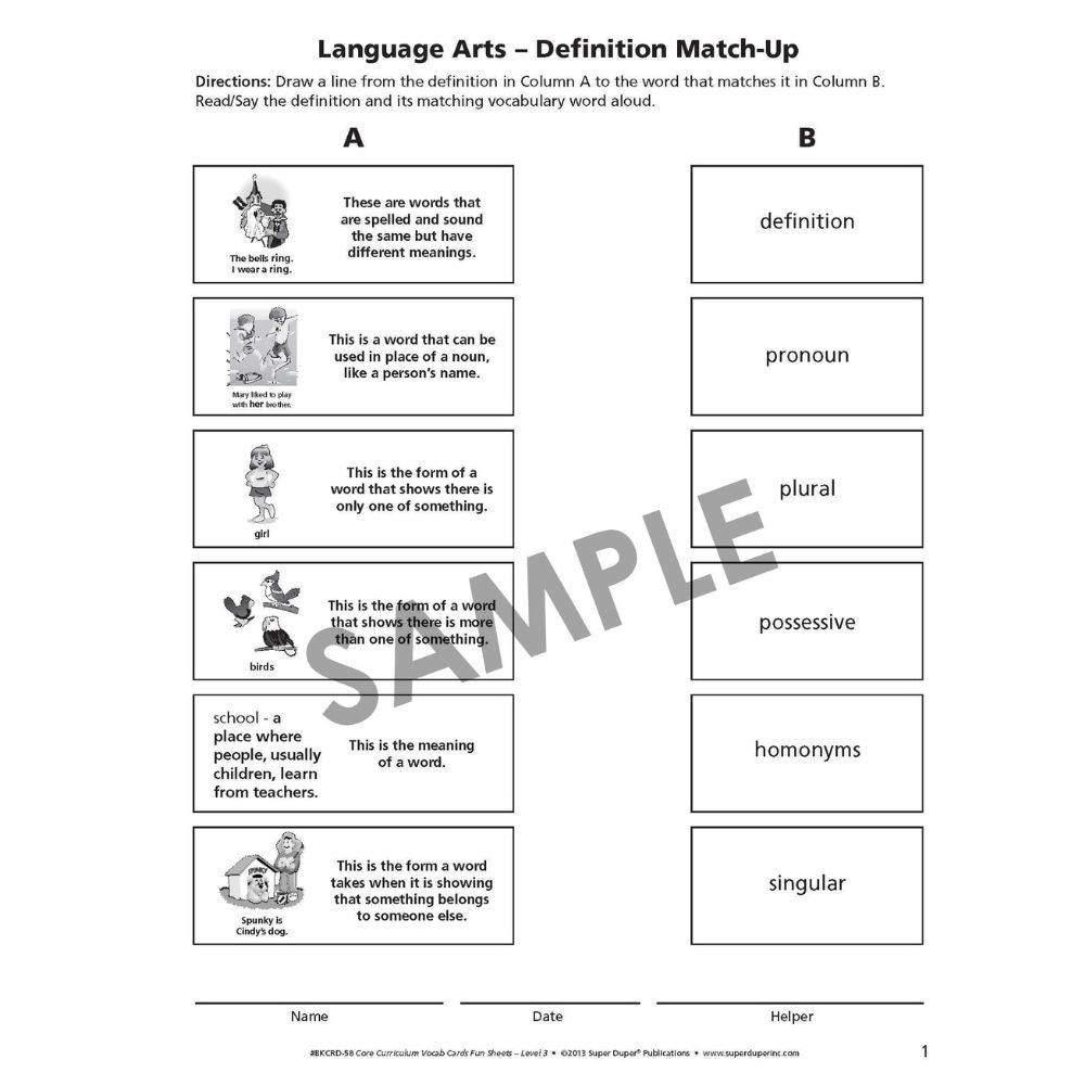 The Fun Sheets present the same core vocabulary words as the photo cards in activities that include:- Definition Match-Up