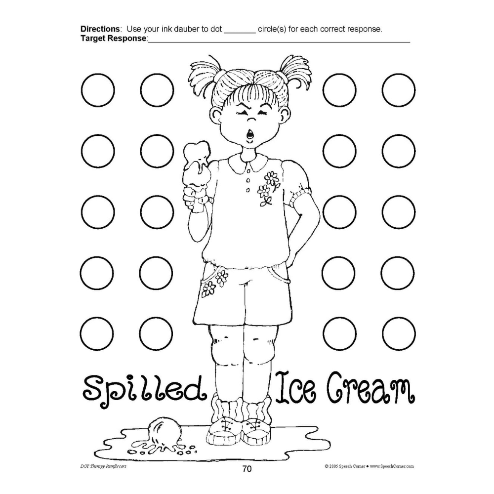 These open-ended reproducible worksheets are the perfect way to target any skill in a motivating format. Upon answering a question, articulating a specific sound/word/sentence, illustrating a concept, or demonstrating any specific target response, students have the opportunity to mark up their game sheet using paint markers (bingo-type markers). When the game sheet is completed and all the circles are filled in, the paint marker activity and the studentās work on that specific target response are finished. The Speech-Language Pathologist (SLP) or clinician is able to modify the length of the activity by dictating how many circles get ādottedā per correct response.