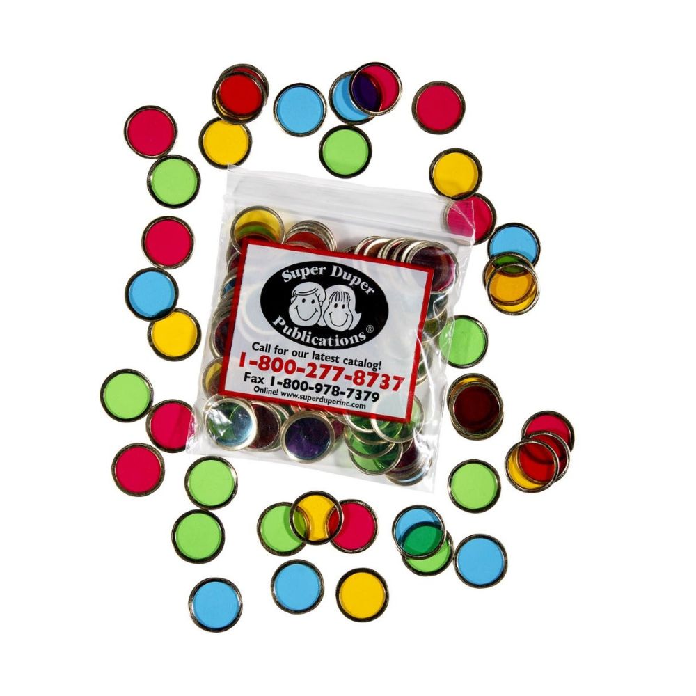 - Approximately 100 hard, plastic chips in assorted colors! ¾" diameter