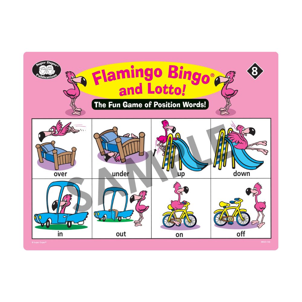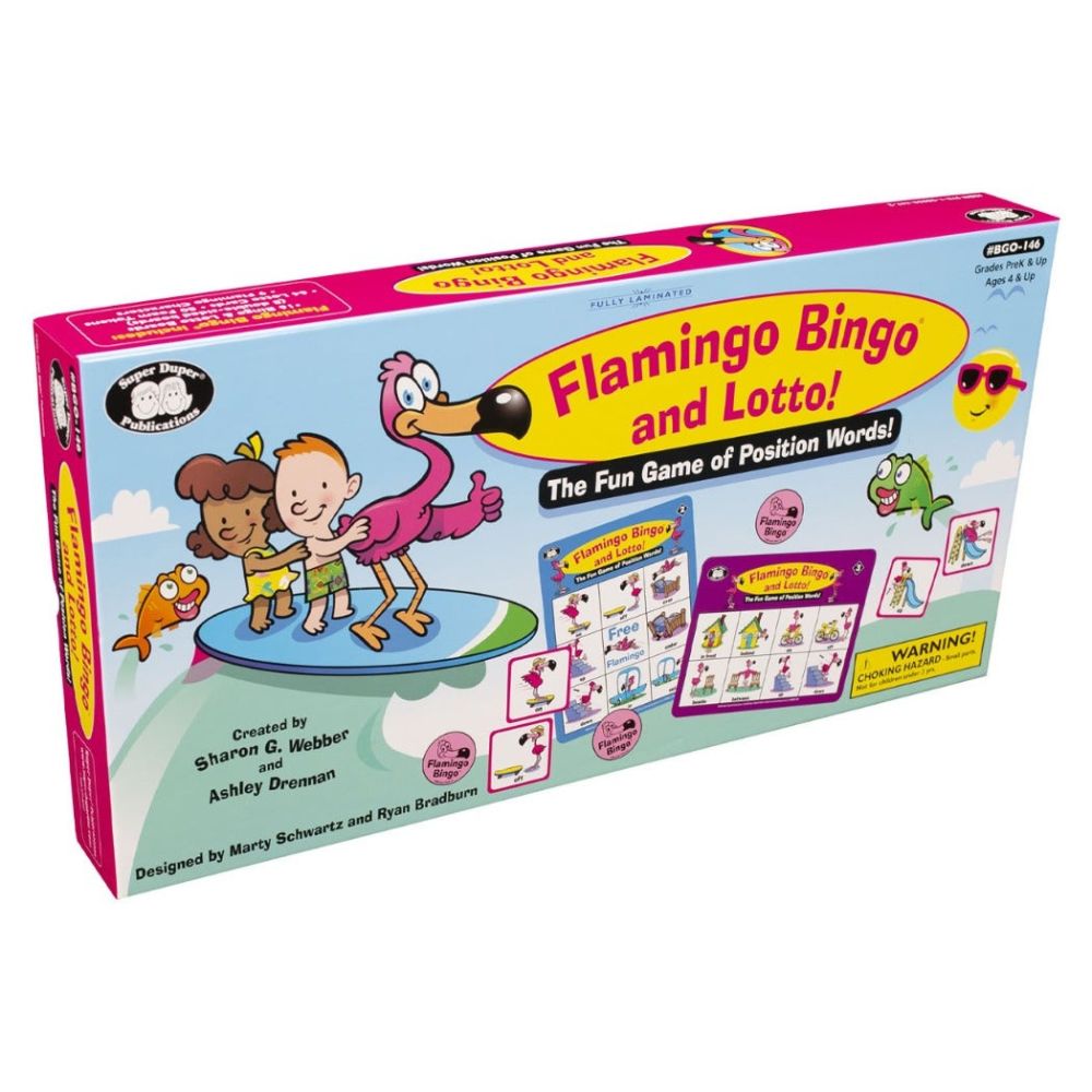 Flamingo Bingo and Lotto is a whimsical educational game that features charming flamingo-themed cards and vibrant illustrations. It captivates children's attention while targeting important language goals. Whether playing at home or in therapy sessions, this game provides a fantastic opportunity to enhance vocabulary, speech articulation, and social interaction.