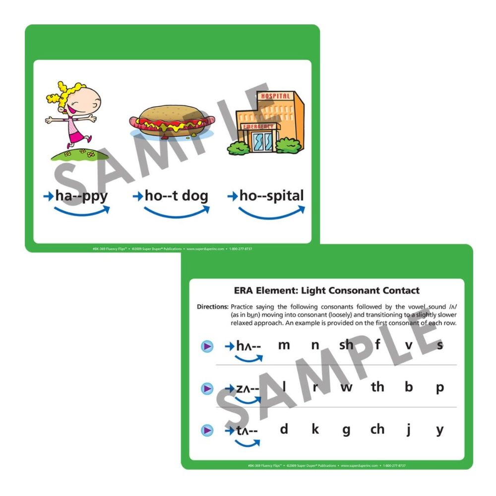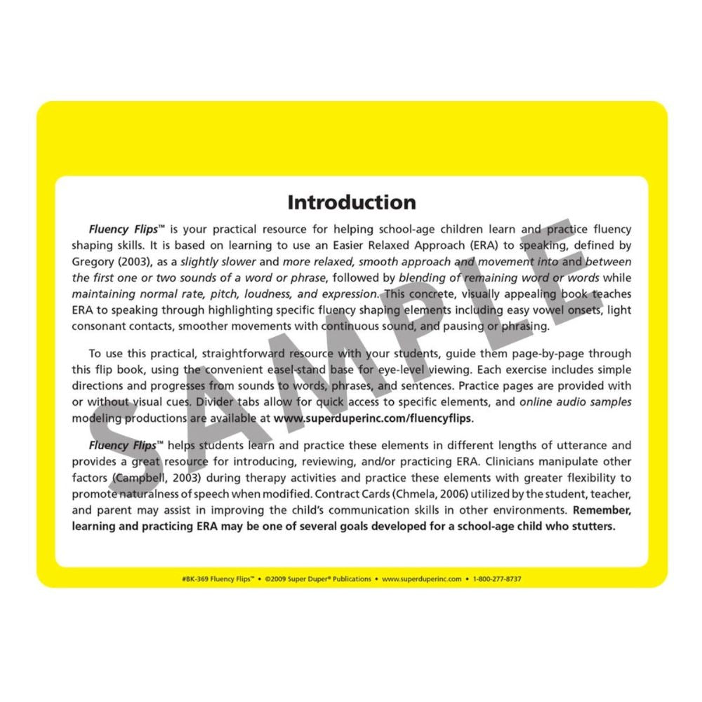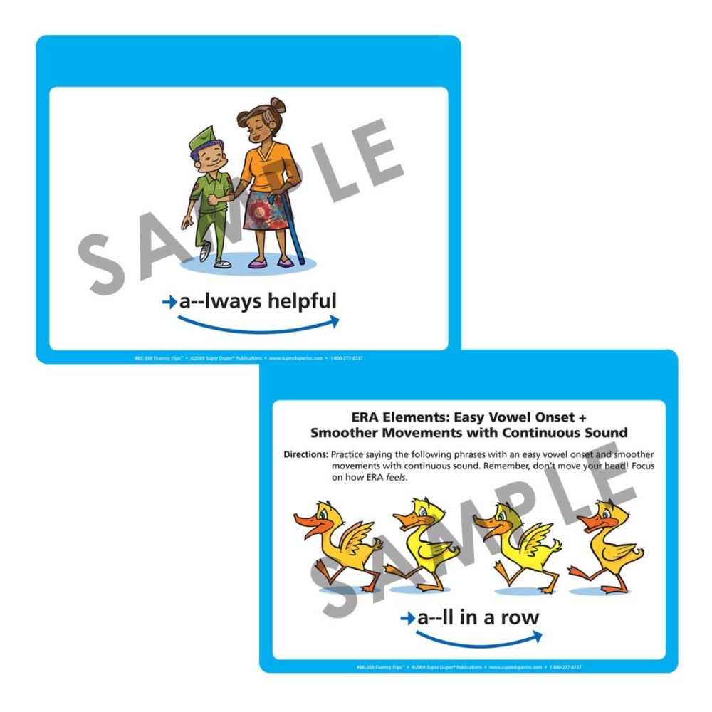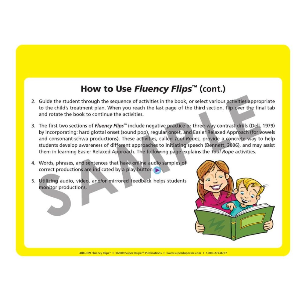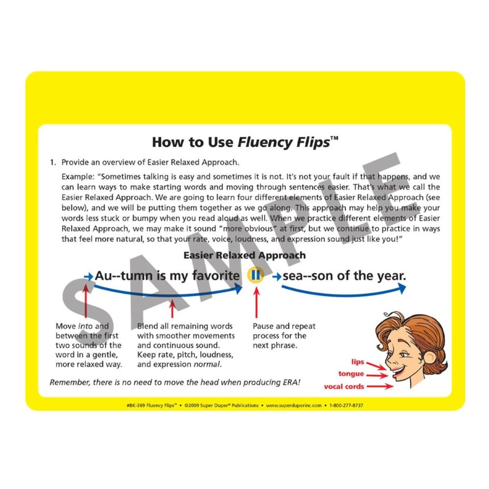 Fluency FLiPS is a convenient, all-in-one flip book that helps teach students strategies for smooth speech. It also includes online audio samples of Kristin A. Chmela (the book's author) producing each of the targeted skills which provides a model for perfecting teaching techniques.