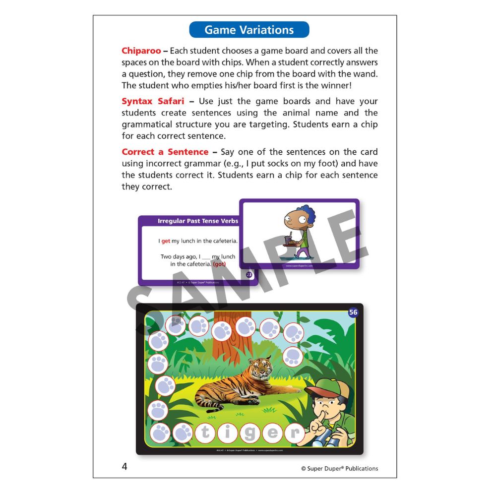 Best of all! Each of the 60 Chipper Chat boards has a photo of an animal with the animal's name spelled out in the spaces. These engaging game boards provide countless opportunities for your students to practice the grammatical structures they learn by creating sentences about their animals. Let the syntax safari begin!