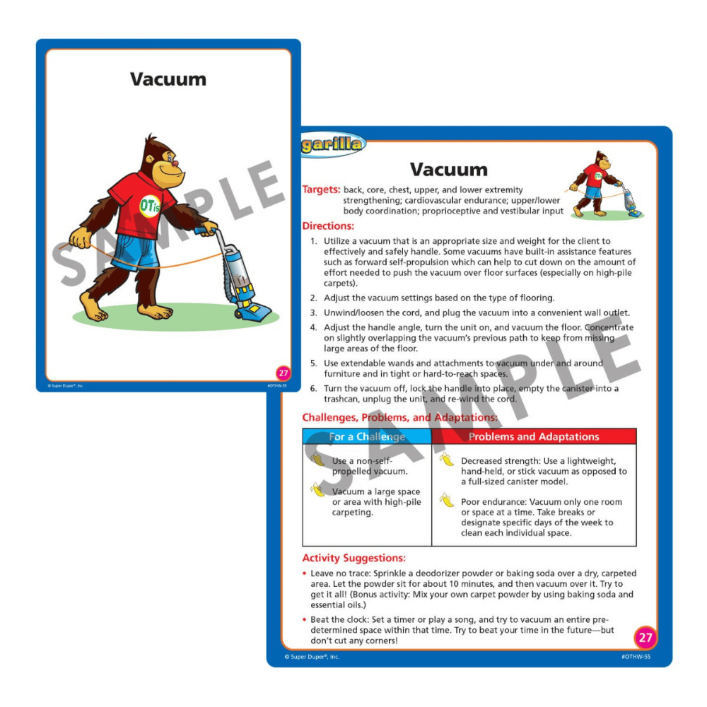 - Instruction booklet includes directions, added challenges, adaptations, and activity ideas for therapy, play, and daily life