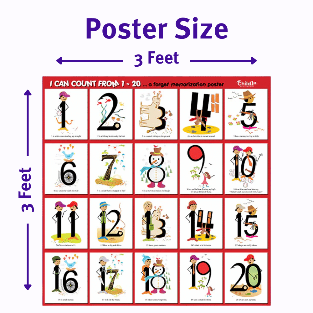 I Can Count from 1-20 Poster is a must-have for early learning environments, providing a fun and engaging way to build number recognition and early math skills.
