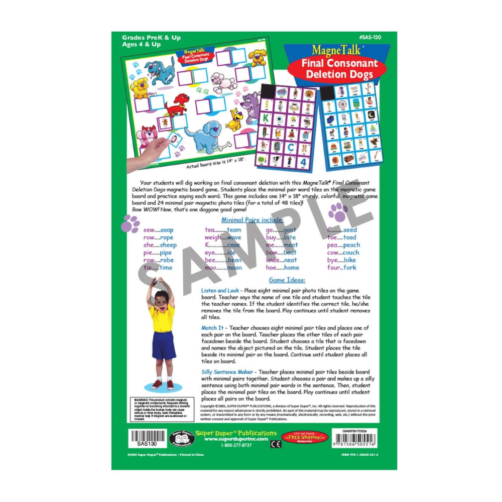 The MagneTalk™ articulation game boards are motivational games with magnetic pieces and a 14" x 18" game board.
