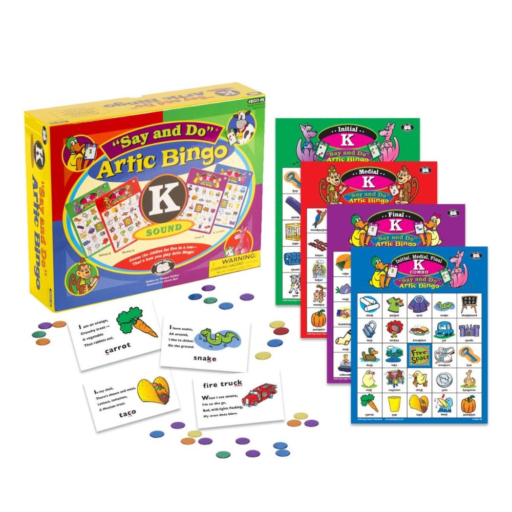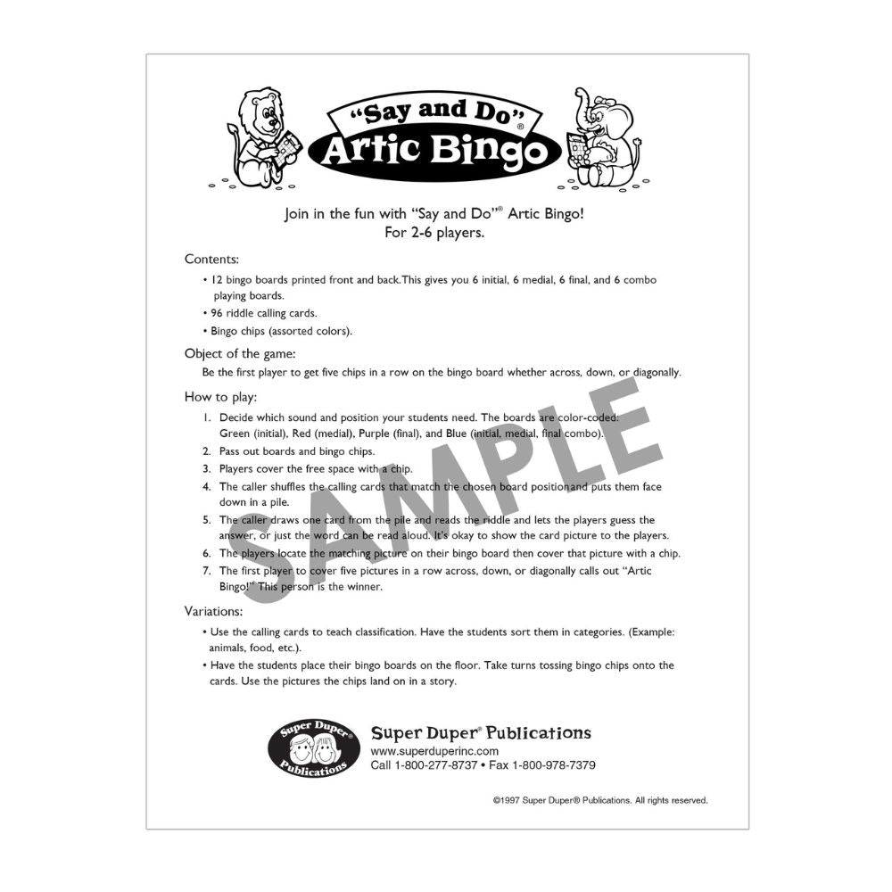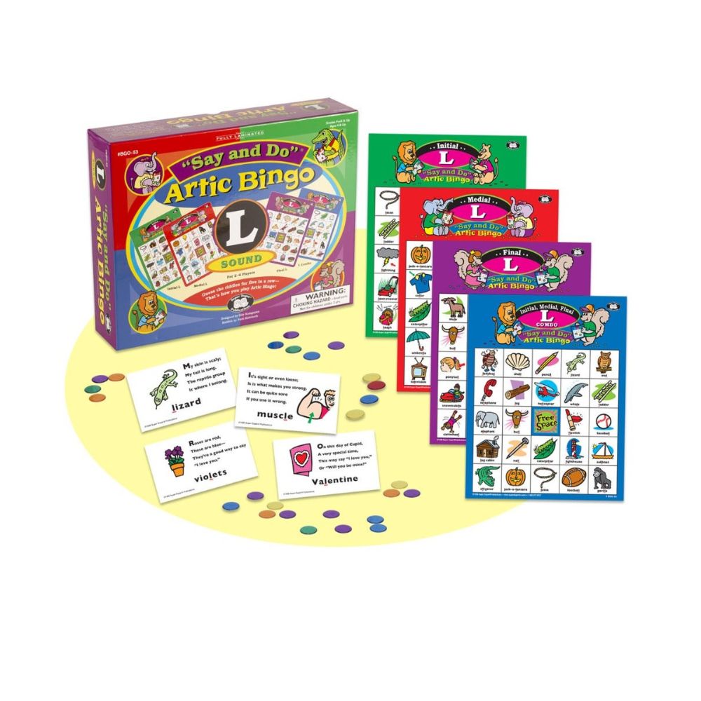 Say and Do® Artic Bingo is an educational game used to effectively build articulation and language skills in students in grades pre-kindergarten and up and ages 3 and up. Speech-Language Pathologists (SLPs), special educators, teachers, and parents can use this motivating and versatile game in a variety of environments to encourage learning through play. Say goodbye to monotony and hello to meaningful learning!
