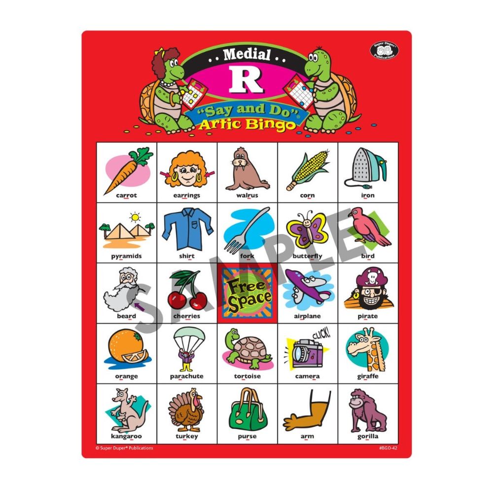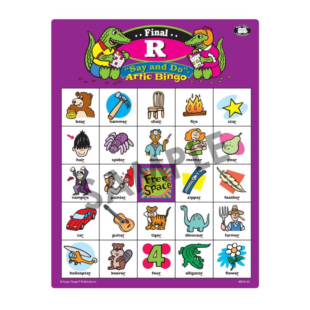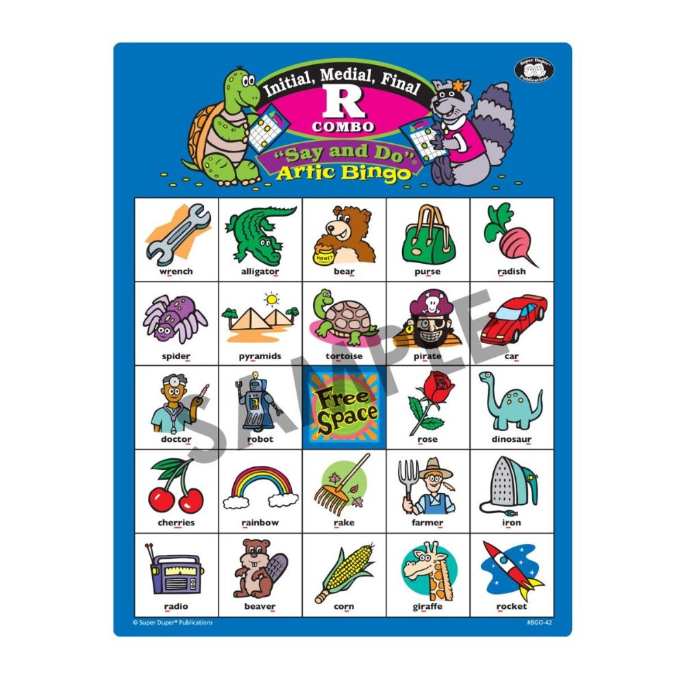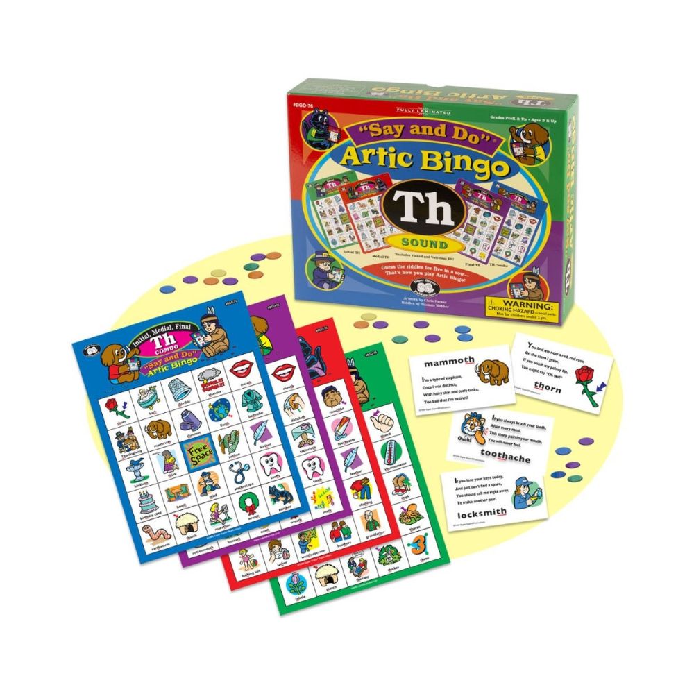 Say and Do® Artic Bingo is an educational game used to effectively build articulation and language skills in students in grades pre-kindergarten and up and ages 3 and up. Speech-Language Pathologists (SLPs), special educators, teachers, and parents can use this motivating and versatile game in a variety of environments to encourage learning through play. Say goodbye to monotony and hello to meaningful learning!