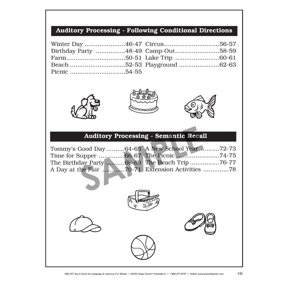 Your early learners have a chance to be in cut-and-paste heaven while they listen and learn six important language skills: