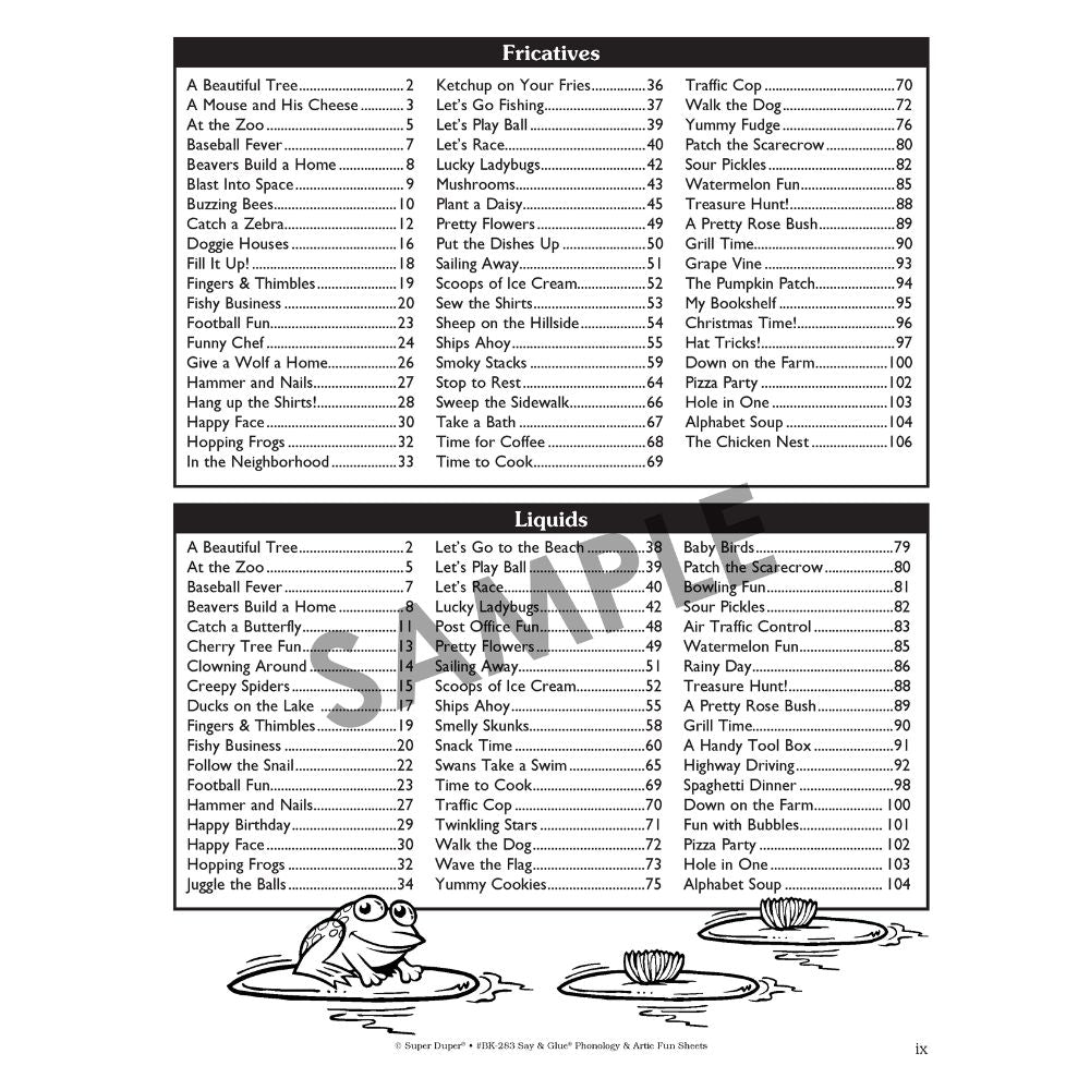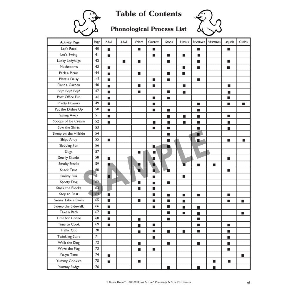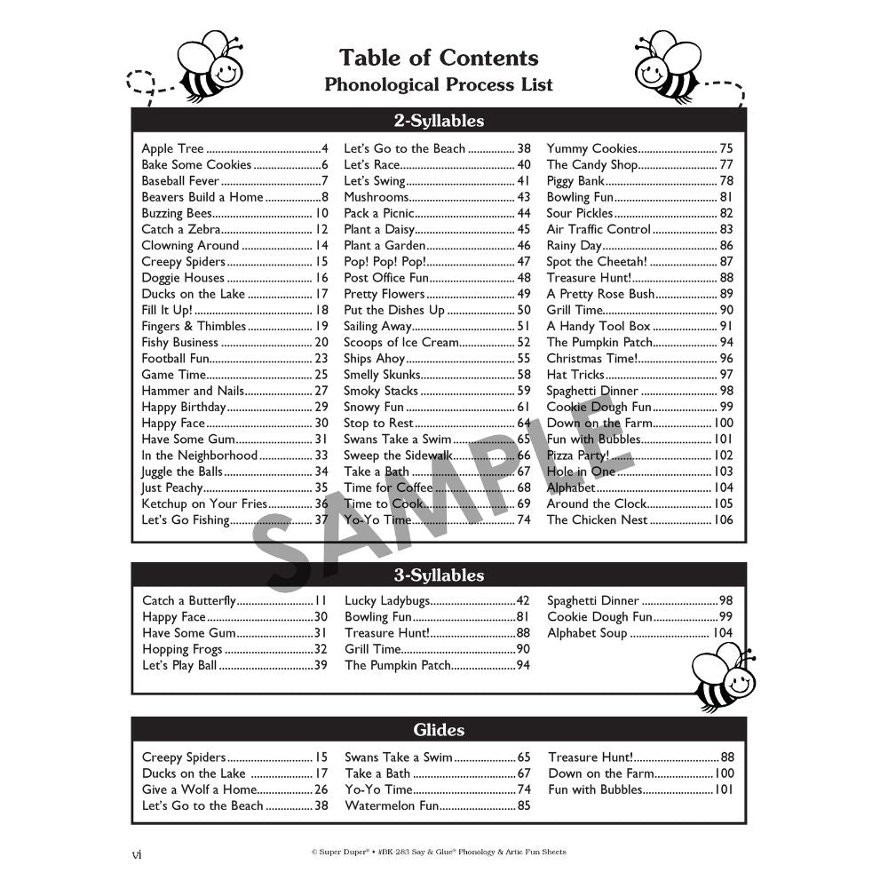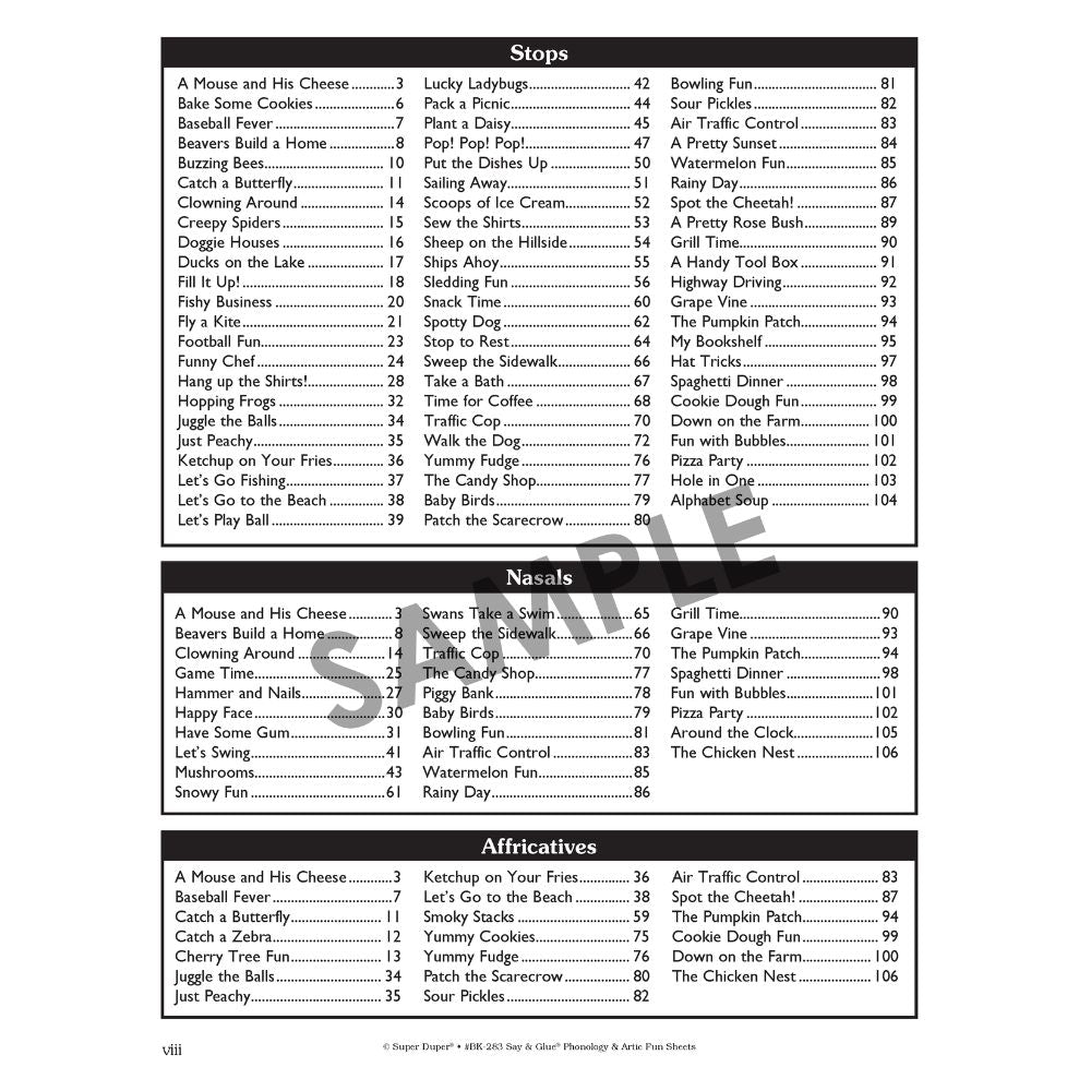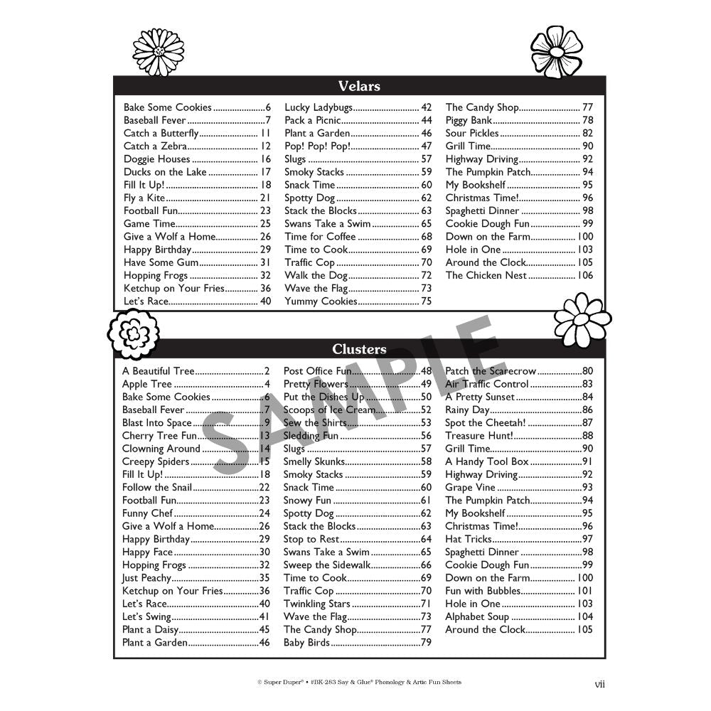 The Say & Glue Phonology & Artic Fun Sheets include: