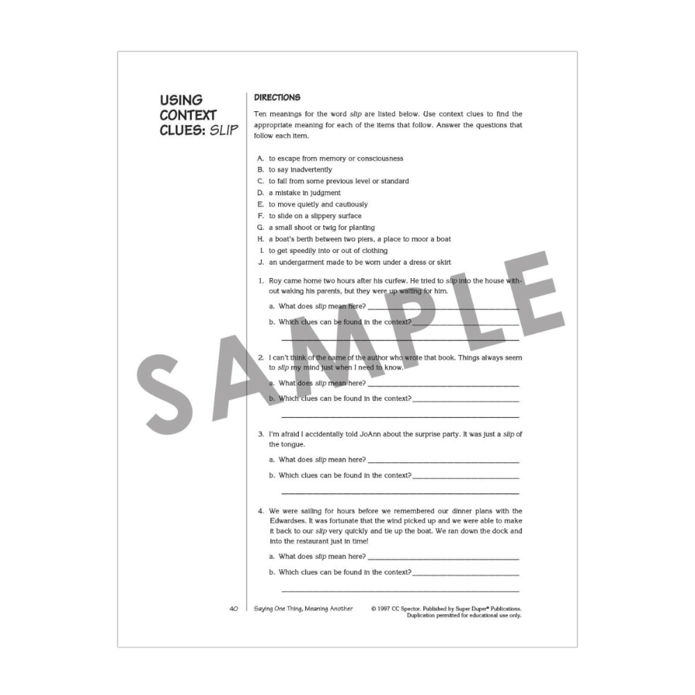 - Covers multiple-meaning words, idioms, proverbs, irony, sarcasm, and polite requests.