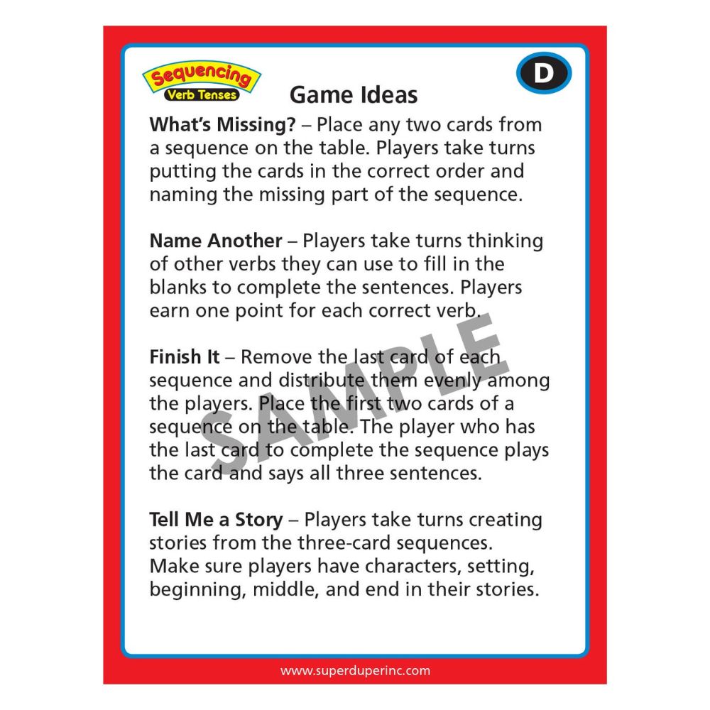 Both Sequencing Verb Tenses Card Deck includes: