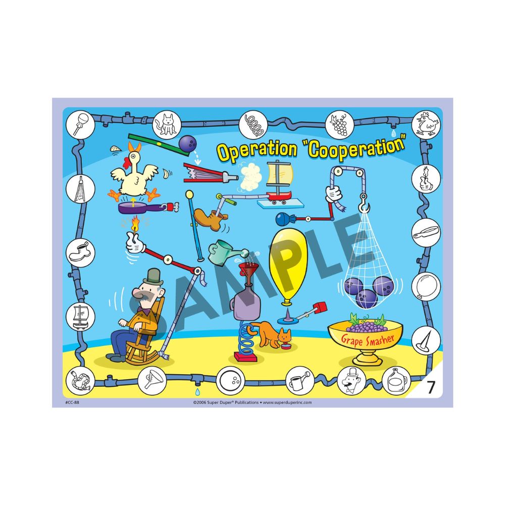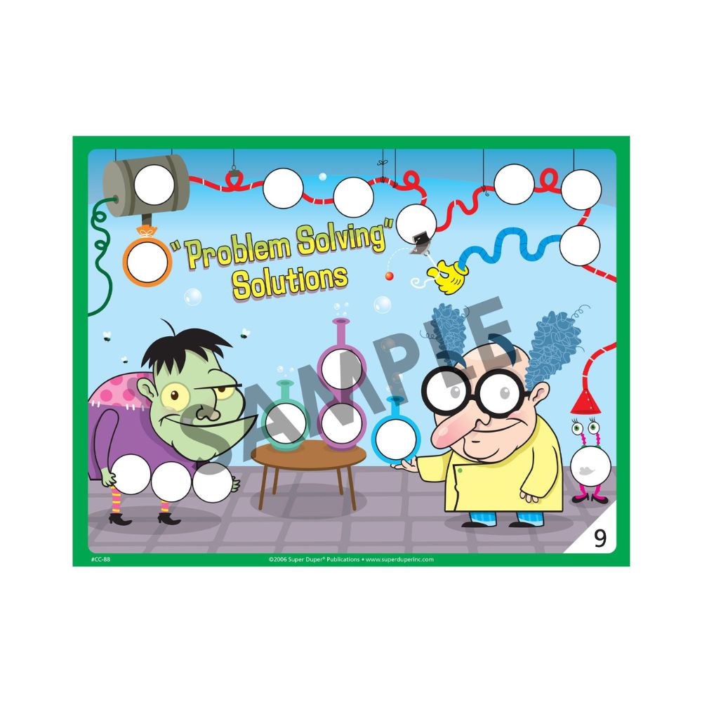 This educational game includes 12 different sets of social "theme" boards that encourage group or individual discussions. The boards present 144 everyday scenes (12 per theme), related social stories, and relevant follow-up questions. The theme boards' social skills topics include: