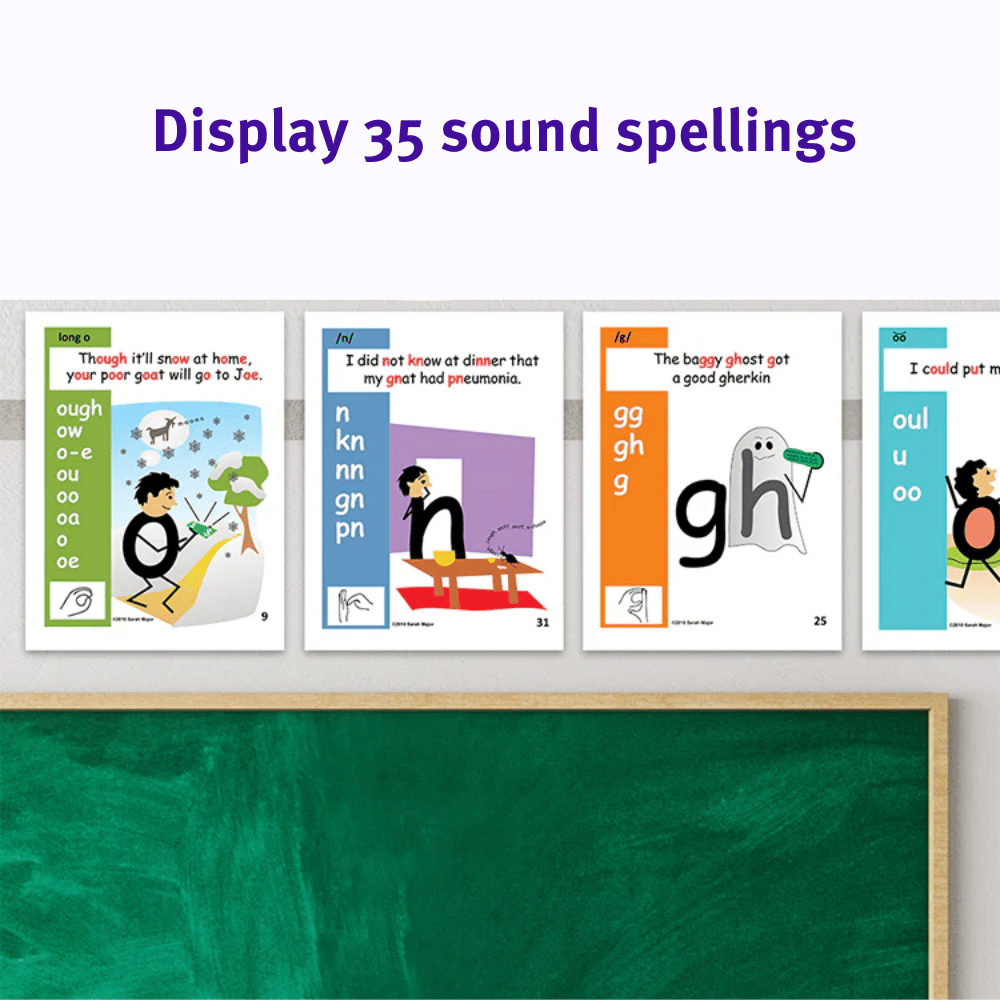 The Sound Spelling Display Cards include 35 full-colour cards.