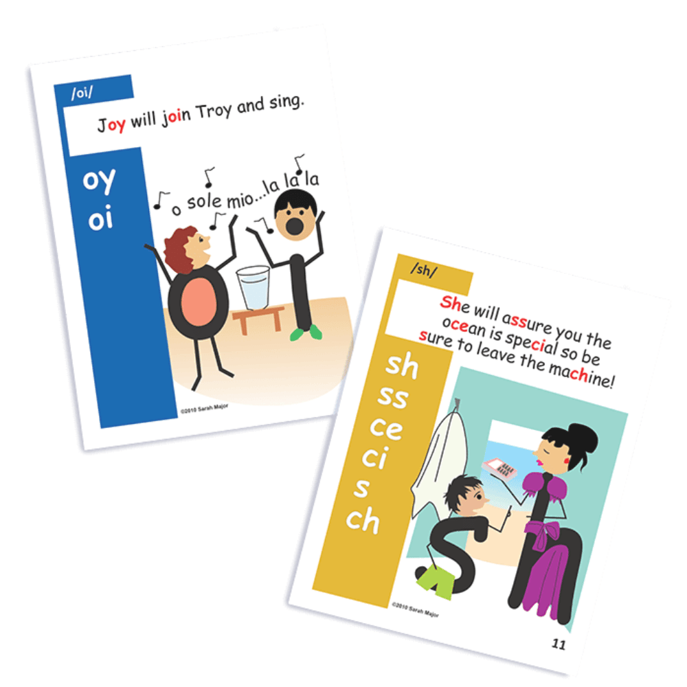 The Sound Spelling Teaching Cards include 154 cards covering key phonics concepts, including: