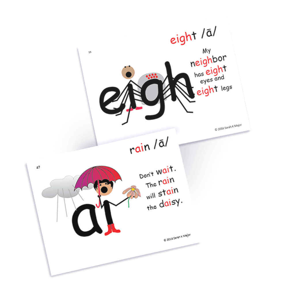 - Display all 8 corresponding cards, each showcasing a different way to spell the sound.