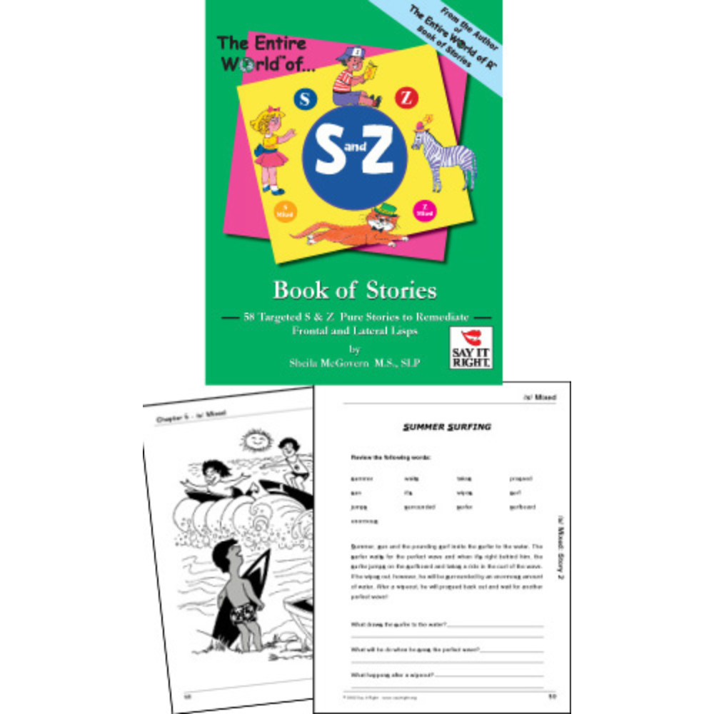The Entire World of S & Z: Book of Stories, offers an advanced-level articulation tool for dealing with the tricky /s/ and /z/ phonemes. This book focuses on reading, structured conversation and conversational speech-level activities.