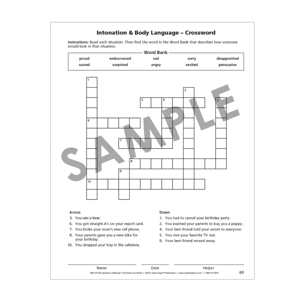 The activities in The Question Challenge® Card Game Fun Sheets reinforce students’ expressive and receptive language skills in 10 areas that are necessary for effective communication and problem-solving. These areas include: