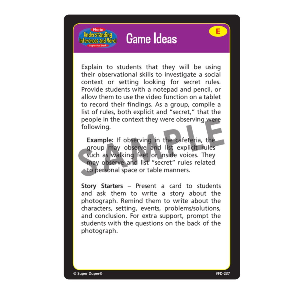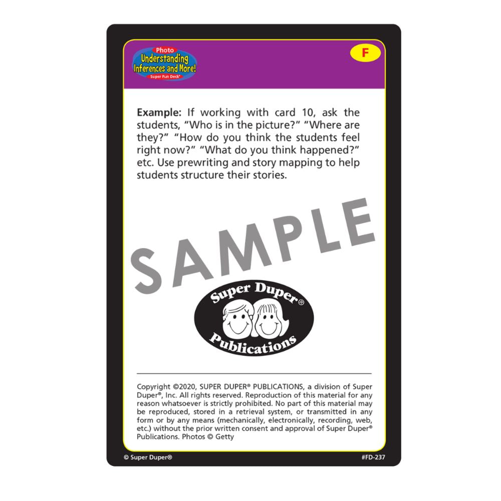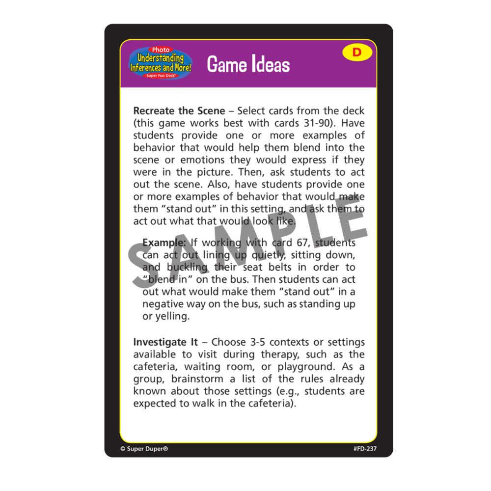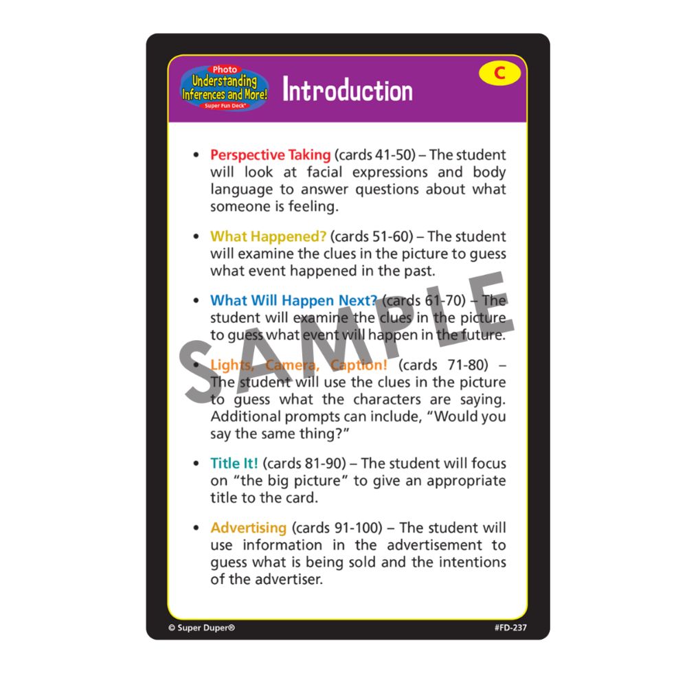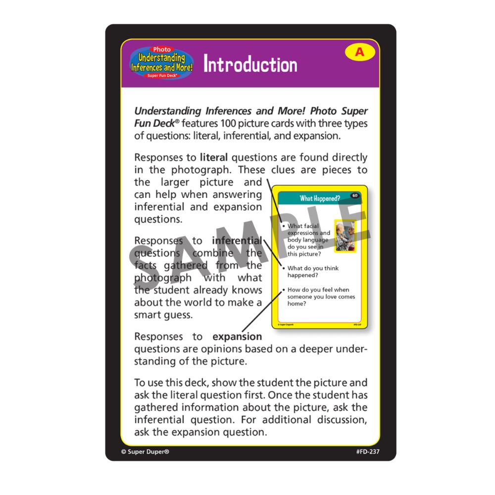 The Photo Undersanding Inferences and More! Super Fun Deck includes: