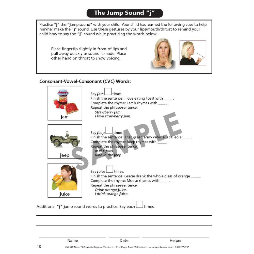 Extend speech practice outside the therapy setting with Webber® BIG Apraxia Carryover Worksheets!
