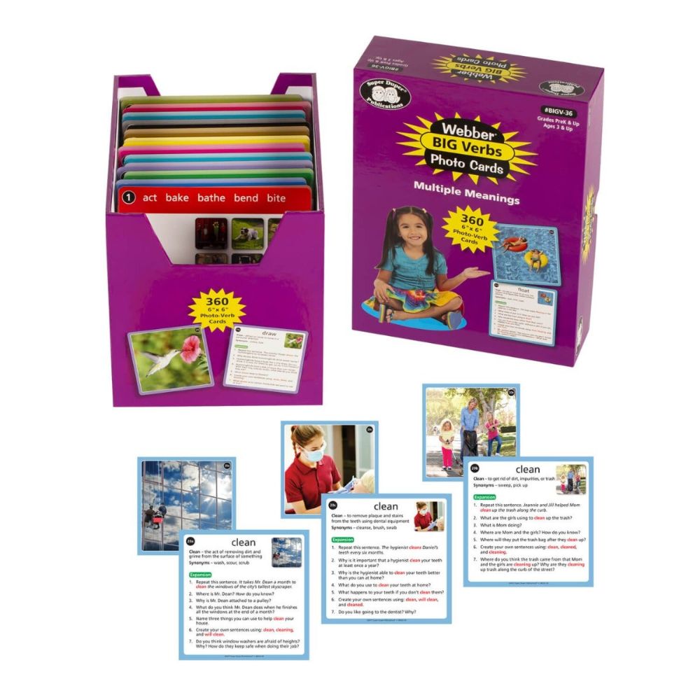 Developed with an emphasis on interactive learning, Webber® BIG Verbs photo cards are perfect for educators, parents, and language professionals seeking to inspire children's language development.