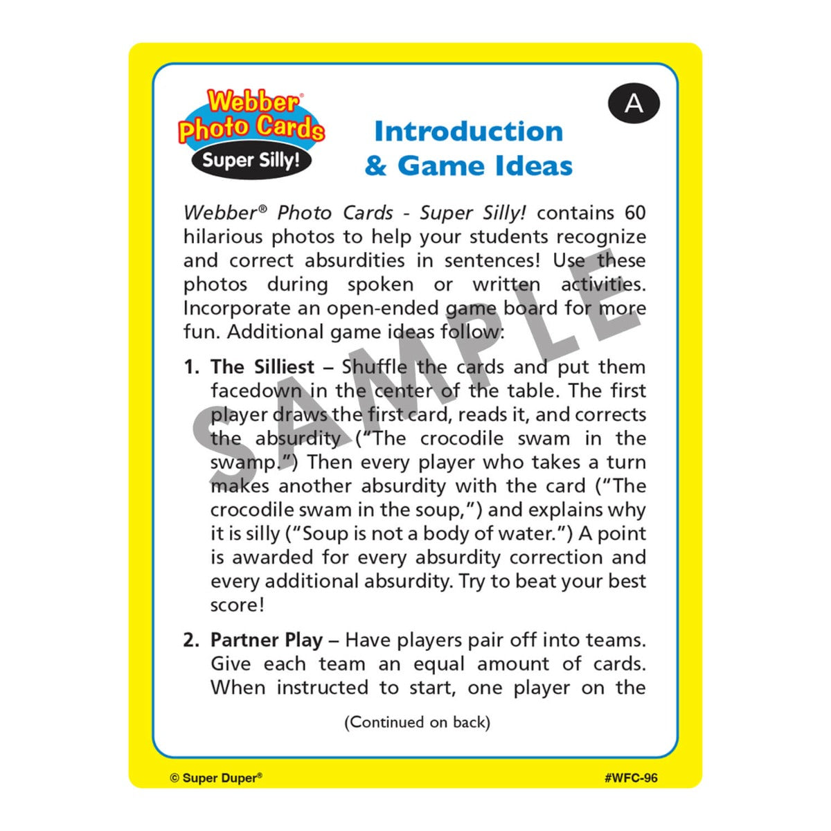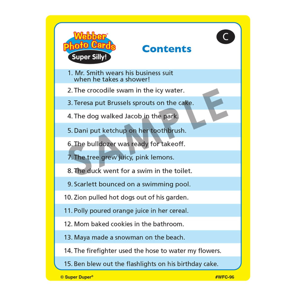 Webber® Photo Cards Super Silly! make recognizing and correcting absurdities a hilarious learning experience.